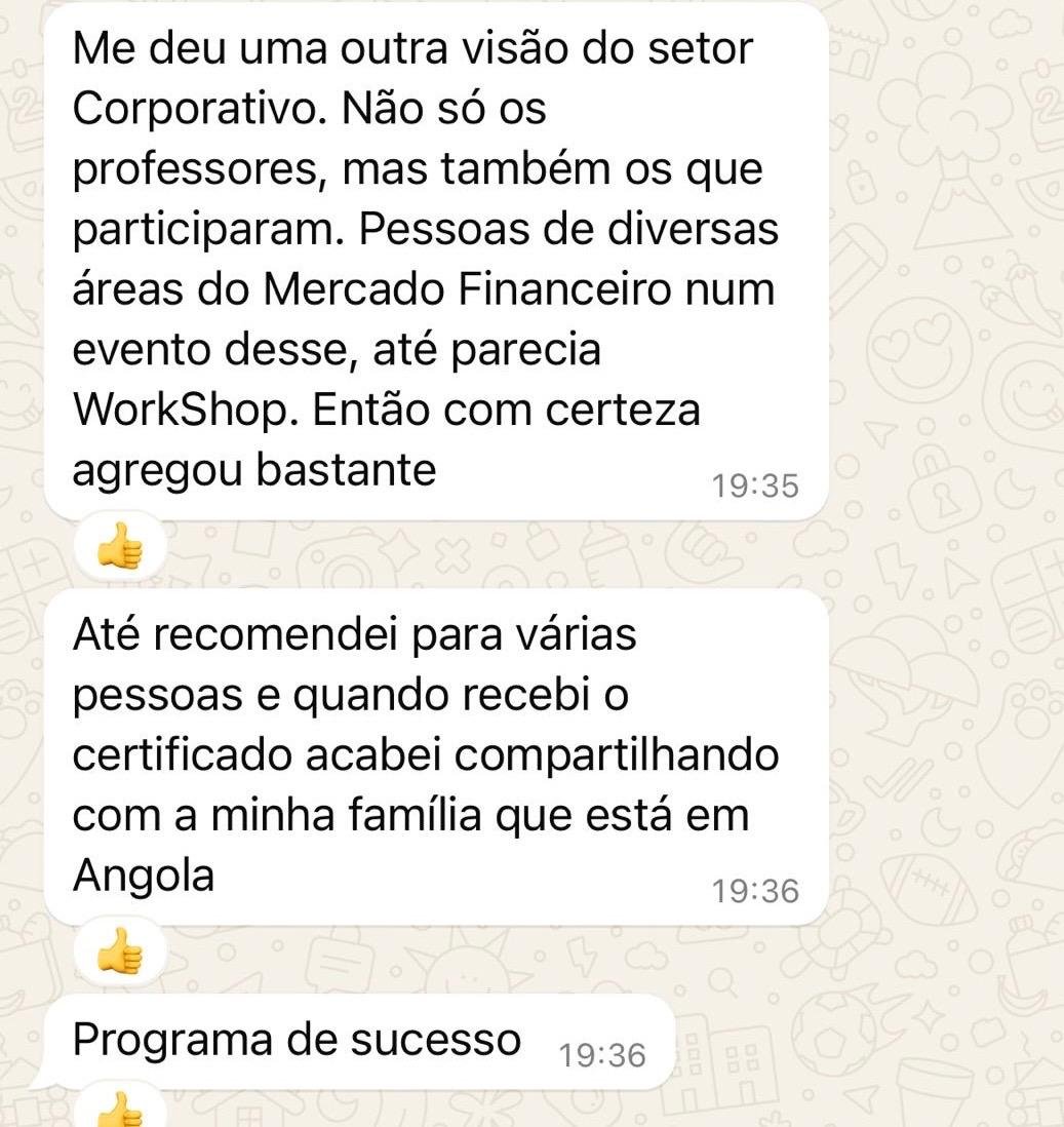 Nossos professores, com anos de experiência no setor, compartilham insights reais e atualizados. O curso, ministrado ao vivo, oferece 12 horas de conteúdo essencial. Abordamos todos os aspectos do investment banking, da teoria à prática.