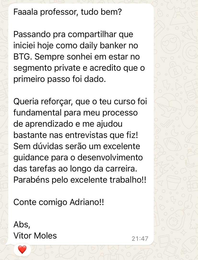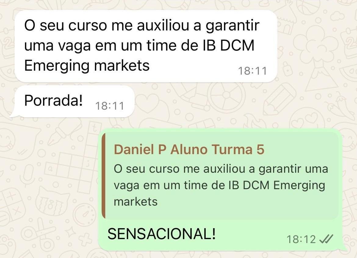 Então, se você não apenas quer fazer parte do mundo de Investment Banking, mas também ter sucesso na sua jornada, basta clicar no botão abaixo para conhecer mais sobre a minha metodologia.